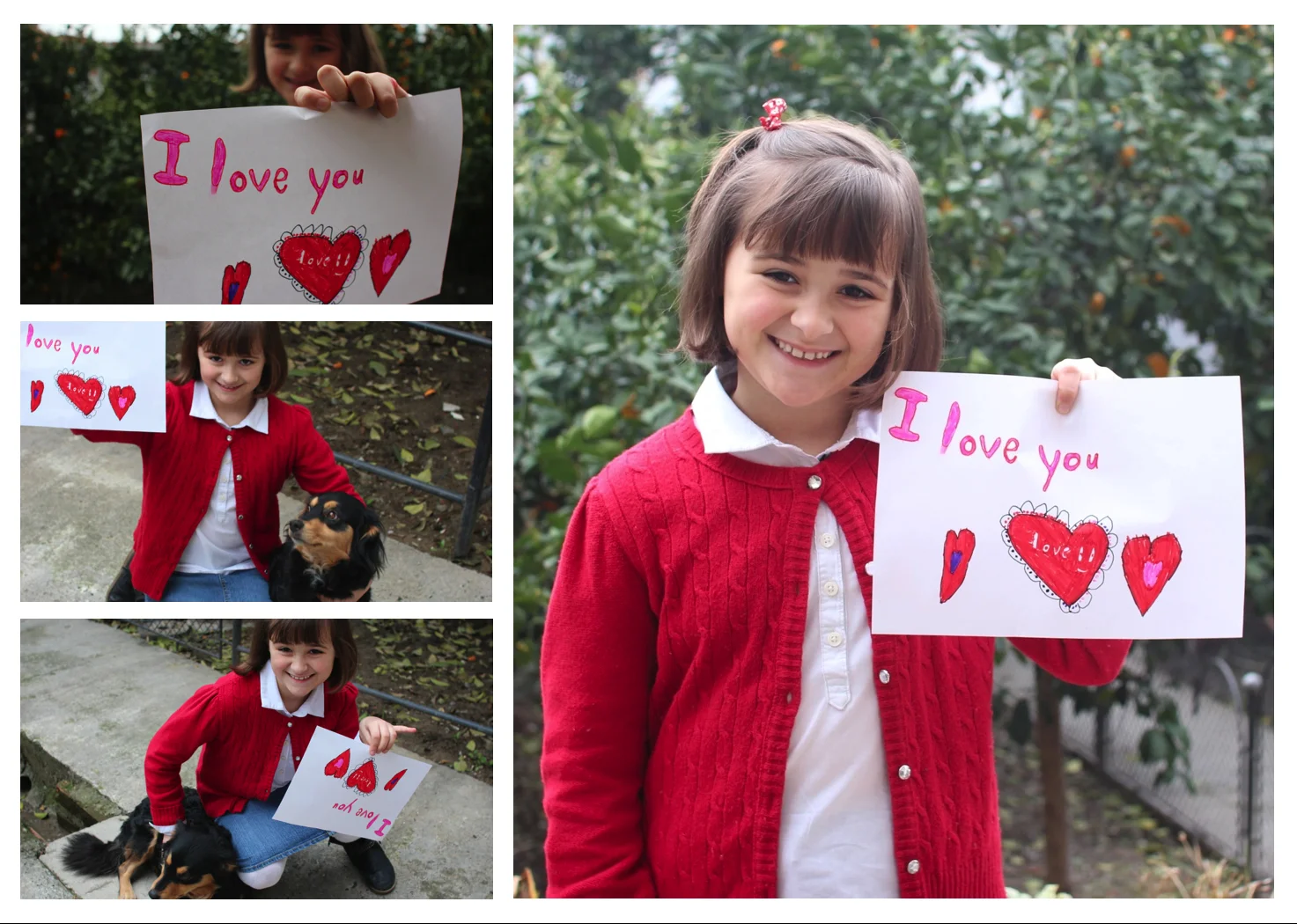 This was the Valentine postcard that we sent (snail mail) to all the Grandparents. [Jillian and Lucy the dog]